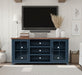 Nantucket - TV Stand Console For TVs Up To 100" - Blue Denim, Whiskey