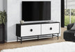 - Ample Storage: The TV console provides extensive storage space for media accessories, with two cabinets each containing a fixed shelf. It also includes two wire management holes to keep cords organized and hidden.