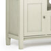 • Transitional design includes shaker style doors, brushed bronze knobs, square tapered legs and square edged table top