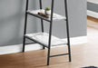 - Ample Storage: Equipped with four fixed, open shelves, this desk provides ample storage options for small workspaces. The shelves come in two different sizes, finished with a smooth laminate.
