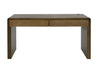 2 Drawer, Desk. Introducing the Tamesis Desk, a blend of modern design and practicality for your workspace. This minimalist desk features clean, sleek lines and is expertly crafted from sustainably sourced mango and melina wood. Its elegant multi-step lacquer finish showcases a beautiful interplay of light brown and chocolate brown tones, enhancing the wood's natural grain. The Tamesis Desk has a spacious rectangular top with rounded edges, combining modern style with comfort. It features a circular grommet with a power outlet and USB C port for added convenience. It includes two well-sized drawers for ample storage, helping you maintain an organized workspace. With solid wooden legs and sturdy construction, this desk is a durable addition to your office. The Tamesis Desk combines elegant aesthetics with practical features, making it ideal for working from home or setting up a stylish office. Its sophisticated design and functionality enhance productivity and workspace ambiance.