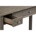 • Transitional Style features shaker style drawers, Brushed Nickel knobs, square tapered legs and square edged table top