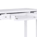 • Features two side storage drawers with metal drawer glides and a flip down central drawer front with internal keyboard tray