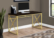 • Sturdy Construction: The desk features a thick panel tabletop that offers a rich wood look, supported by a contemporary X-design gold metal base, ensuring durability and stability.