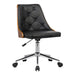 The Armen Living Diamond mid-century office chair is a wonderful addition to your contemporary home. The walnut wood finished poplar back, seat, and front are covered with exquisite plush black faux leather upholstery, while the wheeled base has a sleek chrome finish. The contemporary Diamond office chair has a gas lift feature that makes it be adjustable for any seating arrangement as well as casters for easy movement. The Diamond is mobile and comfortable, an ideal office chair for those looking for a stylish and functional addition to the modern office. This simplistic yet modern design blend seamlessly into any style home. It is the perfect size for compact spaces with great mobility that allows you to move it anywhere in your home. The detailed diamond design pattern creates a glamorous but yet sophisticated feel to the product. The foundation of the product is supported by solid chrome for a sturdy and stylish aesthetic without comprising practicality and functionality of this item. The medium high cushion back is ideal for posture alignment and an unmatched support for days on end. The foundation of the product is supported by solid chrome for a sturdy and stylish aesthetic without comprising practicality and functionality of this item. This item is a versatile piece that can be ideal for any home office, dining room, or kitchen nook. This product ships in one box with easy and quick set up. We stand by the quality, the craftsmanship and the integrity of our product by offer 1-year warranty for all our products. This mid-century and modern design mix adds a unique style to your office and breaks the rules of typical office seating. Product Dimensions: 30.7-34.7" H x 19.5" W x 22.5" D