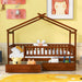 Twin Size House Bed With 2 Drawers - Walnut