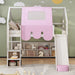 Twin Size Charming House Shaped Loft Bed With Tent And Slide - White / Pink