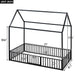 Twin Size Metal House Bed With Fence And Door - Black