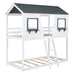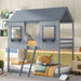 Twin Over Twin Bunk Bed With Roof, Window, Guardrail, Ladder - Gray