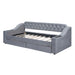 Embossed with buttons, this daybed brings an artistic atmosphere to your home. The design offers a sense of ease and comfort. This bed provides a convenient and charming space for you to relax. The headboard design serves as an eye-catching focal point. The bed features two large drawers that glide smoothly, providing ample storage for clothes and bedding while also making it easy to clean underneath. This optimizes your bedroom's organization. Additionally, two USB ports are located on either side, supplying power for bedside lighting or charging your iPads. Don't miss the chance to bring this functional bed home!
