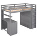Full Size Loft Bed With Drawers, Desk, And Wardrobe - Gray