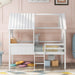 Twin Size Low Loft House Bed With Two Side Windows - White / Brown