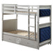 Varian - Twin Over Twin Bunk Bed - Blue Velvet & Silver