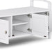 - Features 3 shaker style doors that open to large internal storage area with shelves