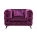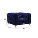 Elegant and eye-catching, the beautiful Atronia chair is the perfect addition to any space. Chic button tuft design with bright blue cover, strength, and beauty guaranteed with sturdy wood frame and chrome legs. This chair is bound to be the conversation piece.