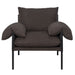Introducing the Bloom Accent Chair, a beautiful balance of sculptural design and everyday comfort. Available in rich Brown or soft Oat, it is upholstered in a soft-touch performance fabric that offers a welcoming feel along with exceptional durability. The sleek black metal frame creates a striking contrast with the upholstery, resulting in a modern silhouette that complements a variety of interior styles. Designed for individual seating, the Bloom chair offers generous support with a weight capacity of 400 pounds. Its square seat and plush pillow-back design provide a cozy, supportive experience that invites you to relax. Whether placed in a living area, reading nook, or office, it brings both function and sophistication to your space. One of its standout features is the overstuffed, pillow-style arms that rest gently on an exposed steel frame. This thoughtful pairing of soft, cushioned comfort with bold structural lines creates a visually interesting and stylish presence. The chair is grounded by a sturdy four-leg base constructed from a blend of steel and plywood, offering both stability and long-lasting performance. As part of the Bloom Collection, this accent chair is more than just a seating option. It is a refined piece of modern design that brings elegance and personality to any room.