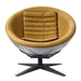 The Brancaster accent chair has a cool retro-futurist design that you won't find anywhere else. The warm hues of its turmeric top grain leather upholstery coats the round, dish-shaped interior, contrasting with the riveted aluminum exterior of the chair back like a space capsule. An 4-Star base provides stable support for this unconventional accent seat.