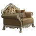 Dresden - Chair With 2 Pillows - Bone Synthetic Leather & Gold Patina
