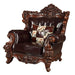 • Oversized Scrolled Carving Trim with Nailhead Trim: Poplar Wood (Detailed Carvings Inside/Outside Backrest, Front Arm, Legs & Base)