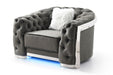 - Modern Design with Chrome Trim: Features a unique modern living room chair with chrome trim on the front and sides, creating a sleek and contemporary look.