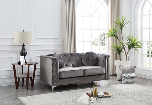 Deco Styled Upholstery Group: Deep tufted soft velvet fabric covers this loveseat, giving it a luxurious and sophisticated look. Hand Applied Na...