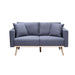- This mid-century modern loveseat comes with 2 pillows, USB charging ports, and pocket for your magazine, books, or hold your charging phone. The square arms and round tapered solid wood legs with a bottom wood trim offers the trendiest look for your home. Comfortable cushion seating and linen fabric, stylish design, and quality material. Complete your living room dcor with the Easton collection.
