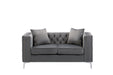 - Glam up your living room with the Lorreto Collection! Crafted from fine wood and quality fabrics, this loveseat features an abundance of button tufting. The double nail-head trim adds a touch of elegance while the low back adds better lumbar support. Entertain your guests and family members in comfort and style.