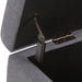 - Features large interior storage space with child safety hinge to prevent lid slamming