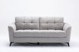 • The Callie sofa provides world-class comfort and style with a tufted cushion design and metal legs. A great look for formal gatherings yet perfect for the family as well. The comfortable fabric will keep guests satisfied and looking elegant while the metal legs will blend luxuriously into a wide selection of rugs.