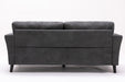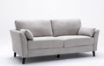 - The Damian sofa is a classic. It's simple design is guaranteed to stand the test of time. The smooth surface of the cushions amplify the sense of order and cleanliness of any room. The 2 accent pillows included are designed to keep guests comfortable according to their own needs. With dark brown solid wood legs as support, the Damian Collection is sure to fit the color palette of most rooms. Relaxing on comforting fabric has never been so easy.