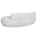 The sofa features a distinctive oval seat shape that offers generous seating for up to three people. Its gracefully curved back enhances both visual interest and ergonomic support, creating a comfortable space to relax or entertain. The armless design contributes to a sleek, open silhouette that works beautifully in both compact and spacious interiors.