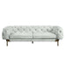 This Ragle chesterfield sofa brings both modern and impressive style to your living space with luxurious Vintage White top grain leather upholstery. Diamond-tufted backrest to smooth and extremely comfortable high-density full foam cushions for a seating experience that lives up to this sofa's polished look. Steady metal legs add a tailored touch to this modern-day classic.