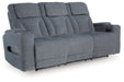 Chill-out time has never looked better. This power reclining sofa's adjustable headrest ensures a perfect view of the TV no matter how far back you recline, while the extended ottoman takes your comfort to the next level. A drop-down table is decked out with reading lights and charging features. Plush yet practical Next-Gen Nuvella™ performance fabric and ambient lighting complete the theater-style experience. It's time to relax, nap or binge-watch in the best seats in the house.