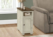 - Versatile Design: This narrow side accent table features a charming two-tone antique white and brown veneer finish, making it suitable for use in a living room as an end table or in a bedroom as a nightstand.