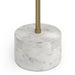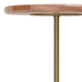 - Features round solid acacia top, antique brass look stem and solid white marble base