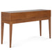 - Contemporary twist on a mid-century design includes solid wood tapered legs