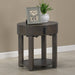 • The Jonah collection brings an end table designed for convenience. Charge up to 2 devices through the USB charging port installed on the back of the end table. The round bottom shelf helps store books, decorations, portraits, etc. Put this next to your sofa and have your charging phone and books within arm's reach!