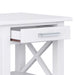 - Features one large drawer with metal drawer glides and an open bottom shelf providing ample storage space.