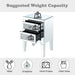 • Mirrored Case Frame: 4mm Beveled Mirror, MDF; FRONT DRAWER]: Faux Crystals Inlay, 4mm Clear Tempered Glass
