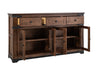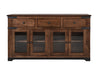3 Drawer 4 Glass Doors 70" Console. The exceptional Parota collection features a top crafted from Parota wood, a species native to Mexico and South America. This outstanding collection is lightly hand-distressed and incorporates metal details for added elegance.