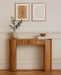 - Artisan Furniture Solid Wood Soba Straight Console Table - This beautiful Soba Console Table has been constructed from 100% solid mango wood and has a lovely natural oak-ish finish. It features 1 compact drawer perfect for bits and pieces such as keys, as well as 4 straight chunky legs. Let this piece create the perfect contemporary look in your hallway.