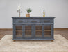3 Drawer 4 Door Console. Introducing the Vintage console, expertly crafted from solid pine wood. This accent console boasts a distinctive, bun feet and a clean-lined design, skillfully finished in a bold tone that elevates it to the status of a statement piece for your room.