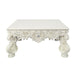 The Persian influence in the conceptualization and presentation of the Sornina coffee table makes it a timeless creation. Featuring a sturdy wooden construction, this console table features a round tabletop that is followed by intricate detailing around the apron and on the carvings of the curved legs supporting the base. Finished in silver and gold to accentuate the detailing.