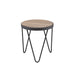 The Bage occasional collection express your hipness with stylish industrial inspired design, its top is the perfect match for your living room space. Its banded edge gives it a solid look setting on the 3 "V" dark metal legs.