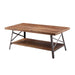 Entertain in style with the Ikram Coffee Table. This classic rectangular occasional table features a weathered oak tabletop with a sandy black metal base. This distinctive metal and wood cocktail table feature a unique 'X' shaped legs with an open lower wood shelf for storage and display. This stylish accent table has a captivating look that makes it an eye-catching piece in any room. Use it to add a touch of contemporary flair to a traditional space or to simply complete a modern aesthetic.