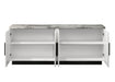 • Transform your space into a haven of style and sophistication with the Matilda Cabinet Console Table. Crafted to perfection, this piece showcases a faux white marble tabletop that radiates refinement and luxury. With a keen eye for practicality, the console table features an adjustable shelf concealed behind four doors, offering customizable storage solutions to accommodate your needs. Contrasting against the pristine white marble, the sleek black base adds a touch of modern flair, creating a captivating aesthetic that demands attention. Whether adorning your entryway, living room, or dining area, the Matilda promises to elevate your interior design with its impeccable craftsmanship and timeless appeal.