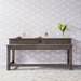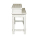 Elevate your space with the Modern Farmhouse console bar table. Crafted of poplar solids with knotty white oak veneers, this piece features heavy distressing, appealing high-low planked top, two plug receptacles and USB ports for easy access charging, with room to comfortability fit three barstools. Also available in an alternate finish, this modern farmhouse piece would be a great addition to your cottage or contemporary style space, especially behind your sofa.
