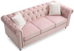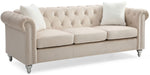 - Faux Jeweled Tufted Design: The Raisa Living Room sofa is adorned with a faux jeweled tufted design on its micro suede velvet cover.
