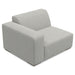 - The back of this cushionless sofa module gently slopes for a slightly reclined position and is padded with high-density foam wrapped in high-quality polyester for a supremely comfortable seating experience, while the armrest is padded for softness and extra-wide to conveniently keep necessities within reach.