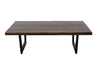 Cocktail Table. The Riverwood occasional tables, meticulously crafted from beautiful parota wood, are a stunning collection that perfectly blends nature with relaxed modern design. Coffee and Sofa table feature a striking central epoxy resin strip that flows through the wood's natural live edges, enhancing its organic appeal while adding a modern flair. The metal legs feature a black matte powder coating that enhances durability and resists corrosion, providing a stable and long-lasting foundation. This makes these tables ideal for everyday use.